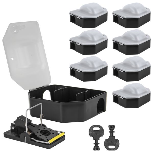 8x Mausefalle Mäusefalle Mäuse Maus Garten Koederbox Köderbox Ecke Köderstation für Mäusegift Mäuseköderbox Gift Koeder Wühlmaus Maeuse transparent Schlüssel Petigi
