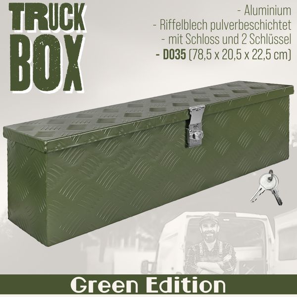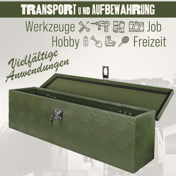 Deichselbox Grün Werkzeugkasten Truckbox Anhänger Kiste Abschließbar Alubox Transportbox Werkzeugbox Aluminium Aufbewahrungsbox trucky