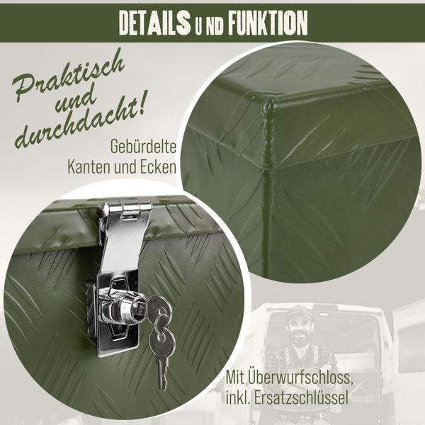 - ALLROUNDER: Die ideale Lösung zur Aufbewahrung von Werkzeugen, Autobedarf, Hobbymaterialien, Lagerartikeln oder Bürobedarf. Hergestellt aus robustem und wasserdichtem Aluminium, bietet diese Box maximale Sicherheit für Ihre Materialien und Maschinen. Zusätzliche Sicherheit auch dank des integrierten Schlosses.