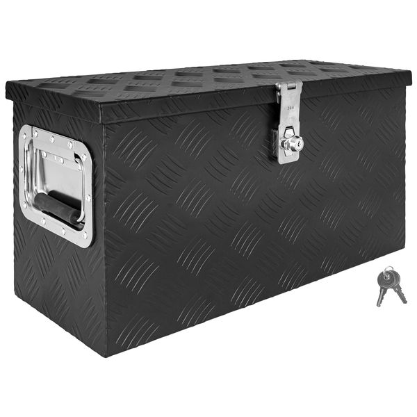 Deichselbox Schwarz Werkzeugkasten Truckbox Alu Box Anhänger Kiste mit Deckel Abschließbar Alubox Transportbox Werkzeugbox Aluminium Aufbewahrungsbox D040 trucky