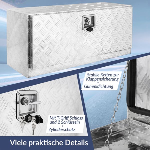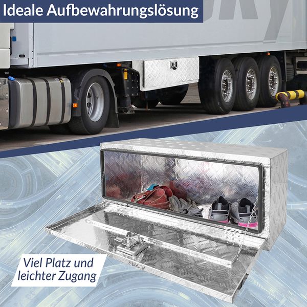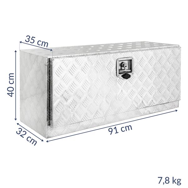 Trucky Aluminium Truckbox, Unterboden Deichselbox, Anhängerbox 91 x 35 x 40 cm Werkzeugkiste mit Schloss und Schlüssel, stabil