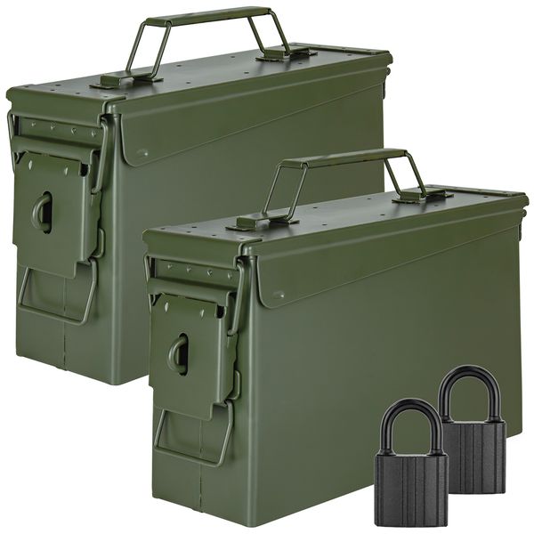 Trucky 2x Munitionsbox Set mit Schloss Ammo Box Metallkiste Metallbox Munitionskiste Aufbewahrungsbox mit Deckel 28 x 10 x 18 cm Army Grün Metall