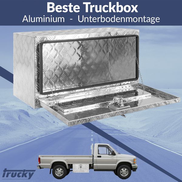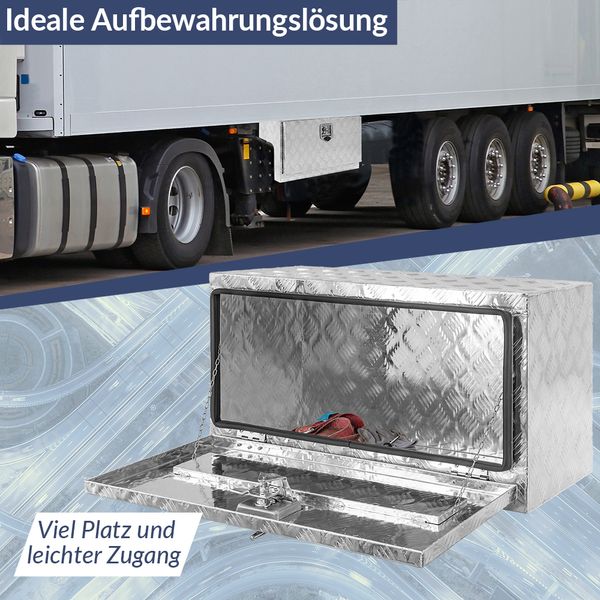 Trucky Aluminium Truckbox, Unterboden Unterflur Box Deichselbox, Anhängerbox Auswahl Werkzeugkiste mit Schloss und Schlüssel, stabil