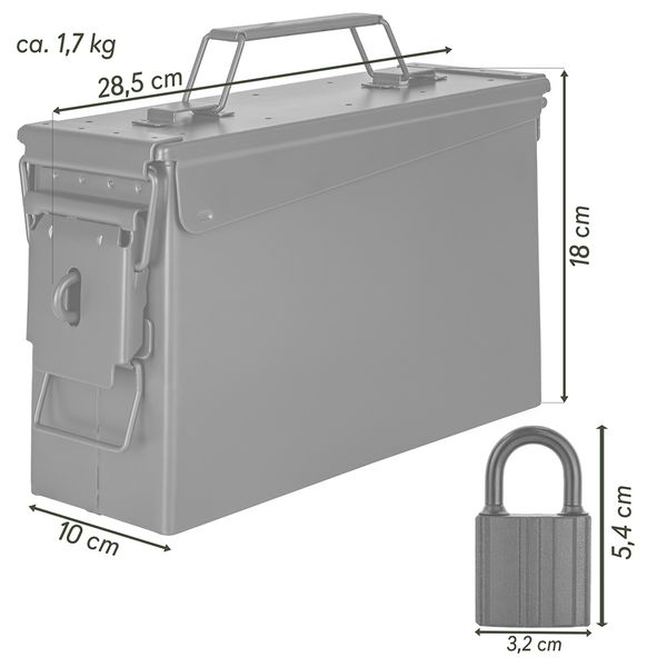 Trucky Auswahl Munitionsbox mit Schloss Ammo Box Metallkiste Metallbox Munitionskiste Aufbewahrungsbox mit Deckel Army Grün Metall