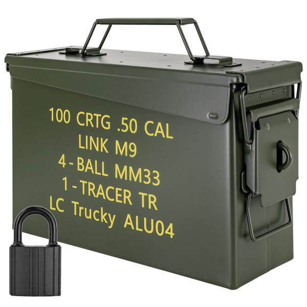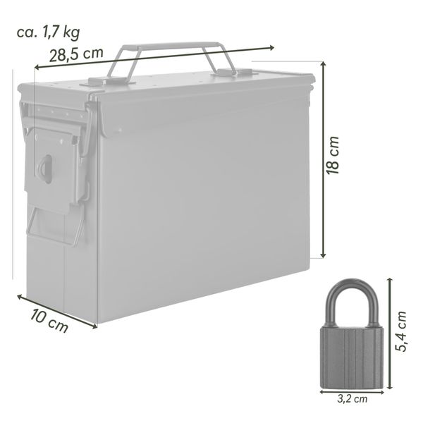 Trucky Munitionsbox mit Schloss Ammo Box Metallkiste Metallbox Munitionskiste Aufbewahrungsbox mit Deckel 28 x 10 x 18 cm Grün Army Metall