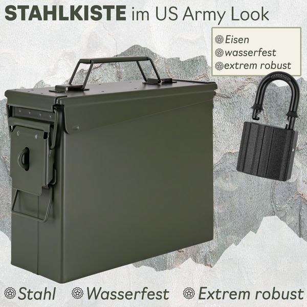 • VIELSEITIG: Perfekt als Werkzeugkiste, Transportbox, Aufbewahrung für Ausrüstung, Dokumente oder als dekoratives Highlight im US-Army-Look. Die Kiste für alles!