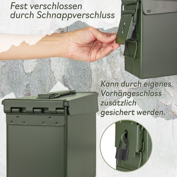 Trucky Munitionsbox mit Schloss Ammo Box Metallkiste Metallbox Munitionskiste Aufbewahrungsbox mit Deckel 28 x 10 x 22 cm Army Grün Metall