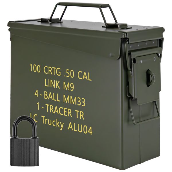 Trucky Munitionsbox mit Schloss Ammo Box Metallkiste Metallbox Munitionskiste Aufbewahrungsbox mit Deckel 28 x 10 x 22 cm Metall Army Grün