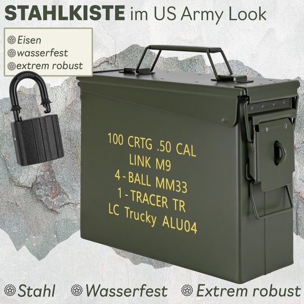 • VIELSEITIG: Perfekt als Werkzeugkiste, Transportbox, Aufbewahrung für Ausrüstung, Dokumente oder als dekoratives Highlight im US-Army-Look. Die Kiste für alles!