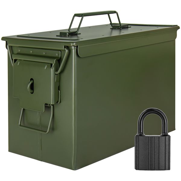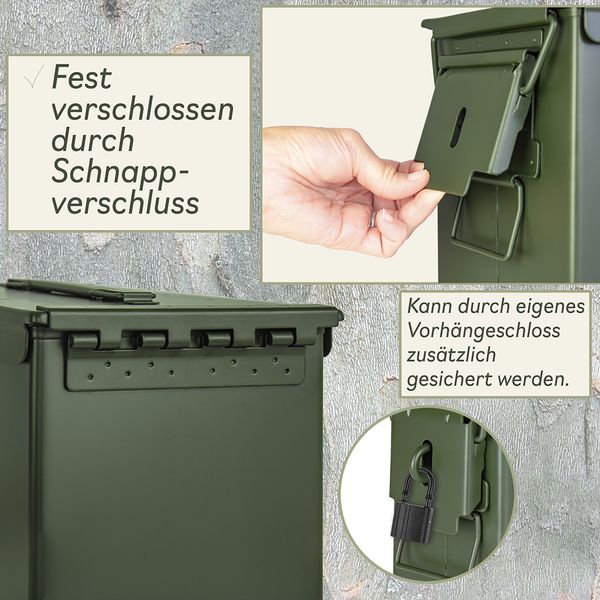 Trucky Munitionsbox mit Schloss Ammo Box Metallkiste Metallbox Munitionskiste Aufbewahrungsbox mit Deckel 33 x 19 x 23 cm Army Grün Metall