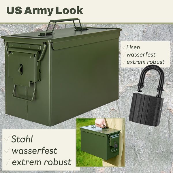 • VIELSEITIG: Perfekt als Werkzeugkiste, Transportbox, Aufbewahrung für Ausrüstung, Dokumente oder als dekoratives Highlight im US-Army-Look. Die Kiste für alles!