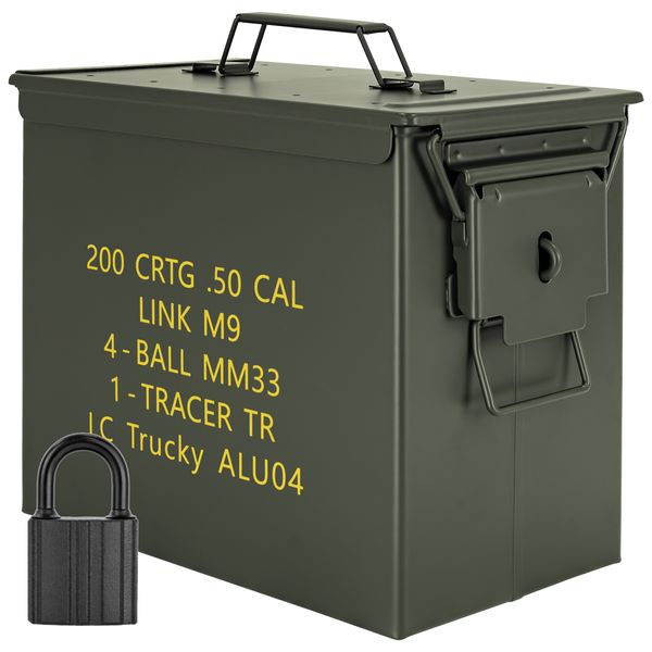 Trucky Munitionsbox mit Schloss Ammo Box Metallkiste Metallbox Munitionskiste Aufbewahrungsbox mit Deckel 33 x 19 x 28 cm Army Metall Grün