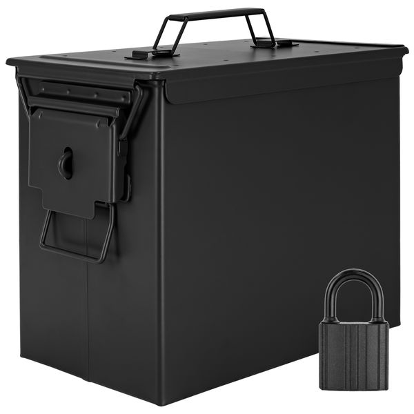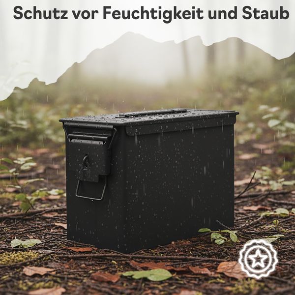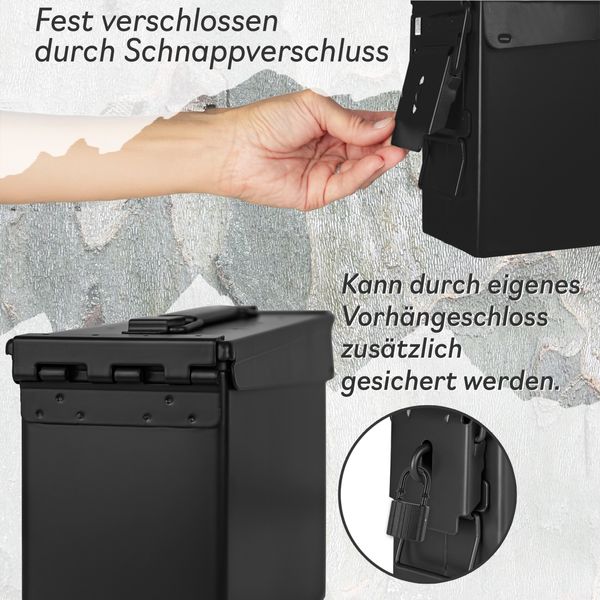 Trucky Munitionsbox mit Schloss Ammo Box Metallkiste Metallbox Munitionskiste Aufbewahrungsbox mit Deckel 33 x 19 x 28 cm Army Schwarz Metall