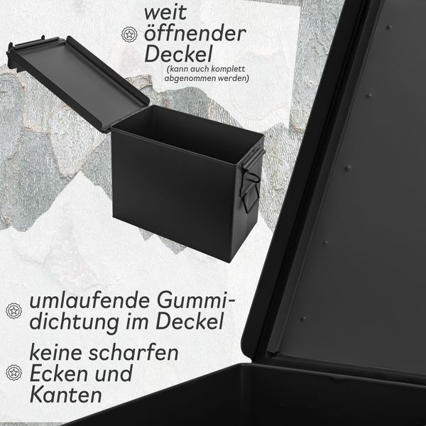 • ROBUST: Gefertigt aus hochwertigem, pulverbeschichtetem Stahl mit stabilem Griff und Scharnieren. Der Deckel der Storage Box kann komplett abgenommen werden.