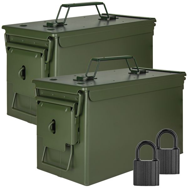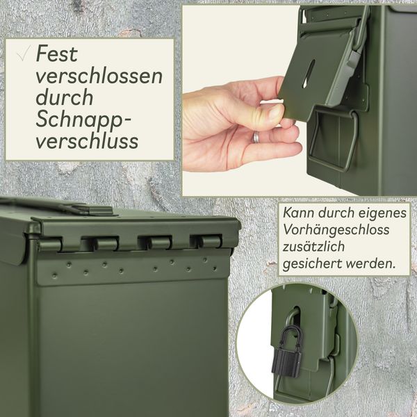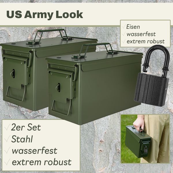 Trucky Set 2x Munitionsbox mit Schloss Ammo Box Metallkiste Metallbox Munitionskiste Aufbewahrungsbox mit Deckel 31 x 16 x 19 cm Army Grün Metall