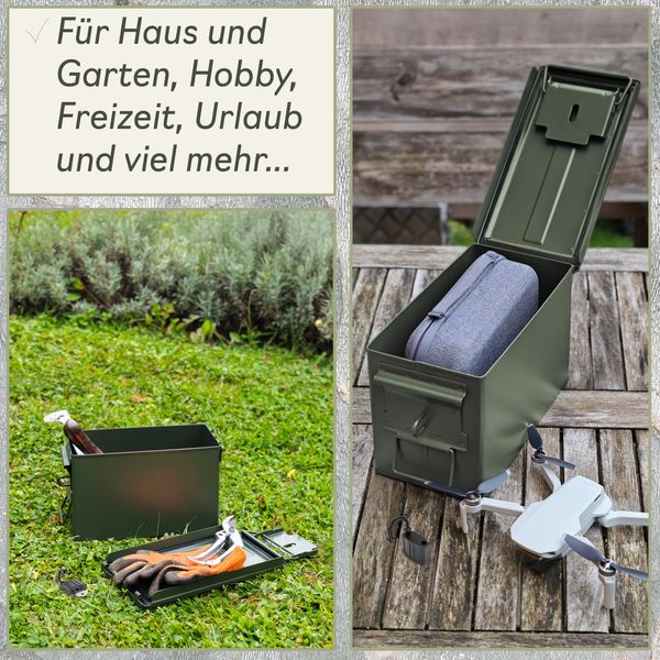 Ob als Werkzeugkiste, Transportbox, Aufbewahrungslösung für Elektronik, Outdoor- oder Angelausrüstung, Dokumente oder sogar als dekoratives Element – die Box bietet unzählige Einsatzmöglichkeiten.