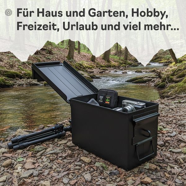 Ob als Werkzeugkiste, Transportbox, Aufbewahrungslösung für Elektronik, Outdoor- oder Angelausrüstung, Dokumente oder sogar als dekoratives Element – die Box bietet unzählige Einsatzmöglichkeiten.
