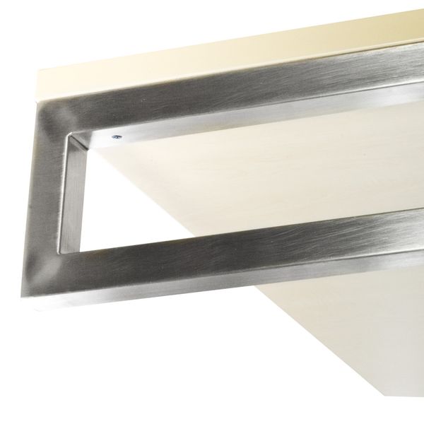 - VORTEIL: Jeweils zwei durchgehende Bohrungen befinden sich an lediglich zwei nebeneinanderliegenden Seiten. Damit sind die Bohrungen und Befestigungen fast unsichtbar. Das Material - gebürsteter Edelstahl passt in fast jede Umgebung.