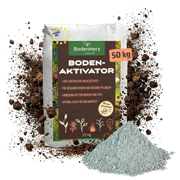 BodenHerz Bodenaktivator, mit Mineralien 100% Natürlich mit Langzeitwirkung zur Bodenverbesserung 25 - 100 kg Bodengesundheit für Beet und Rasen petigi