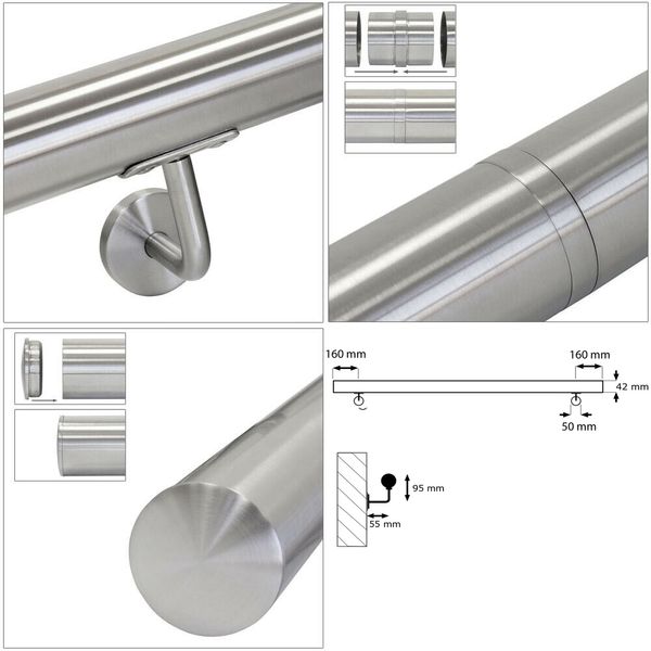 V2Aox Handlauf Treppengeländer aus Edelstahl, Durchmesser: 4,2 cm, Rostfrei & Wetterfest, Inklusive Montagematerial, Halter