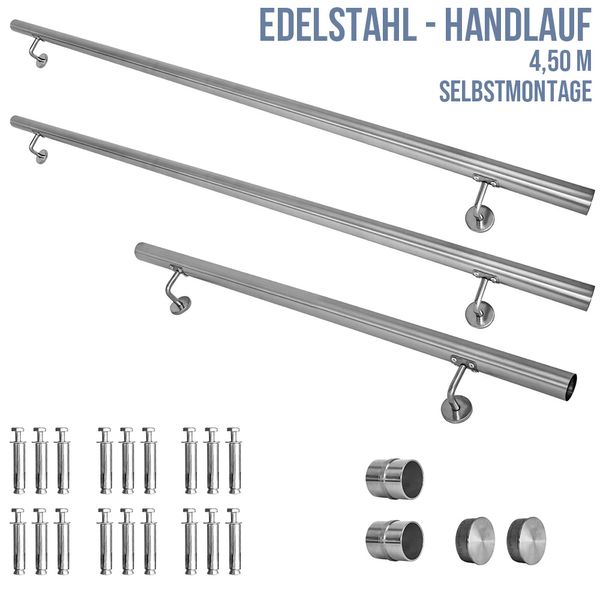 • KOMPLETTPAKET: Ab 250 cm Länge werden die V2Aox Geländersets mit allen Montagematerialien, inklusive Verbindungsstücken und Endkappen für längere Einheiten verschickt. Alles für eine einfache Selbstmontage.