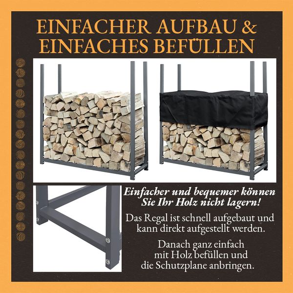 - EINSATZ: In diesem Regal können Sie Ihr Brennholz trocken und übersichtlich lagern. Geeignet für Ihren Garten draussen, im weiteren Outdoor Bereich aussen, den Carport oder die Garage. Ihr Holz ist in diesem Holzregal wegen der mitgelieferten Abdeckplane geschützt vor Feuchtigkeit von oben.