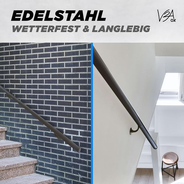 V2Aox Handlauf Treppengeländer aus Edelstahl, Anthrazit, Durchmesser: 4,2 cm, Rostfrei & Wetterfest, Inklusive Montagematerial, Halter,
