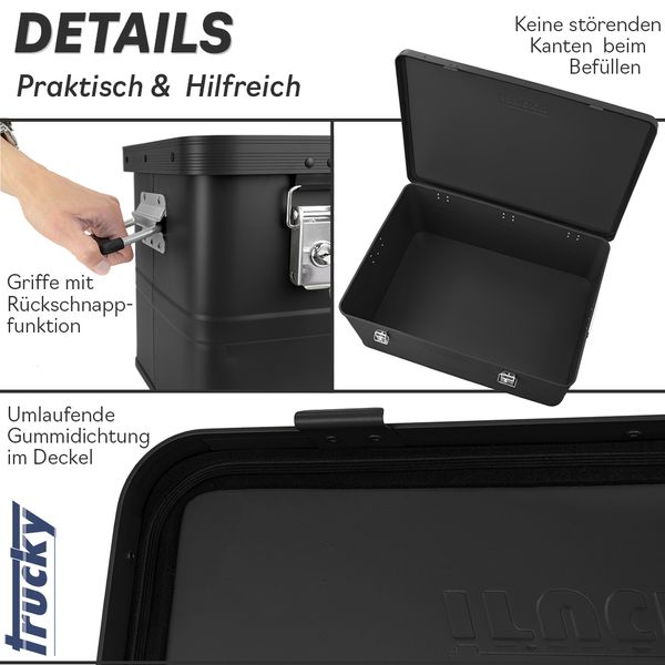 Aluminium Box mit Deckel Auswahl Schwarz Alu Kiste Box Alukiste Transportbox Metallbox Alu Aufbewahrungsbox Boxen Abschliessbar Metallkiste Trucky