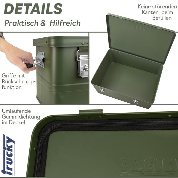 Aluminium Box mit Deckel Grün Alu Kiste Box Alukiste 135 Liter Transportbox Metallbox Alu Aufbewahrungsbox Boxen Abschliessbar Metallkiste Trucky