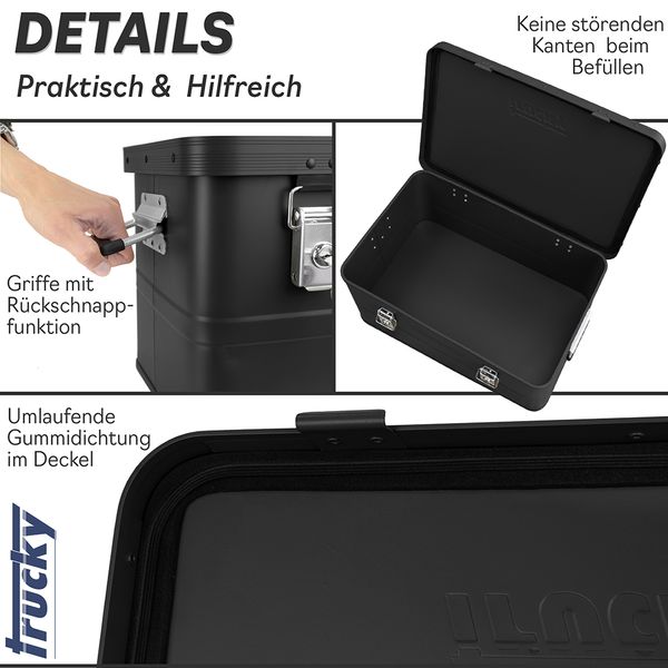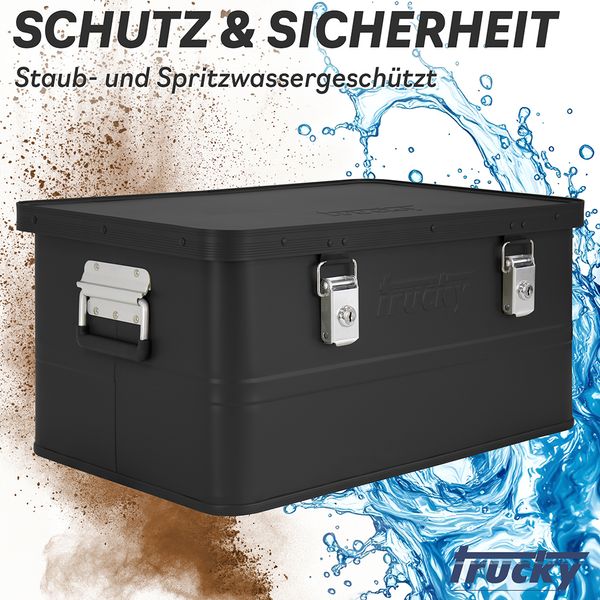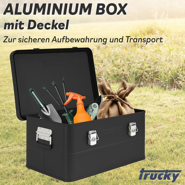 Aluminium Box mit Deckel Schwarz Alu Kiste Box Alukiste 50 Liter Transportbox Metallbox Alu Aufbewahrungsbox Boxen Abschliessbar Metallkiste Trucky