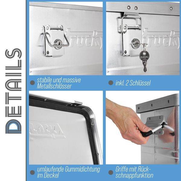 Aluminium Box mit Deckel Silber Alu Kiste Alukiste Auswahl Transportbox Metallbox Aufbewahrungsbox Boxen Abschliessbar Metallkiste Trucky