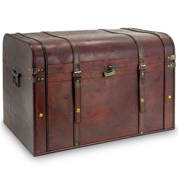 - VINTAGE - DESIGN: Dunkelbraune Optik mit liebevollen Details wie Metallbeschlägen und Verzierungen macht die Truhe zu einem stilvollen Blickfang in Wohn-, Schlaf- oder Kinder Zimmer.