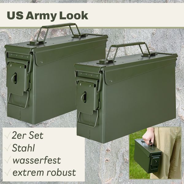 Vielseitige nutzbare Metallbox im Ammo Box Look im 2er Set.