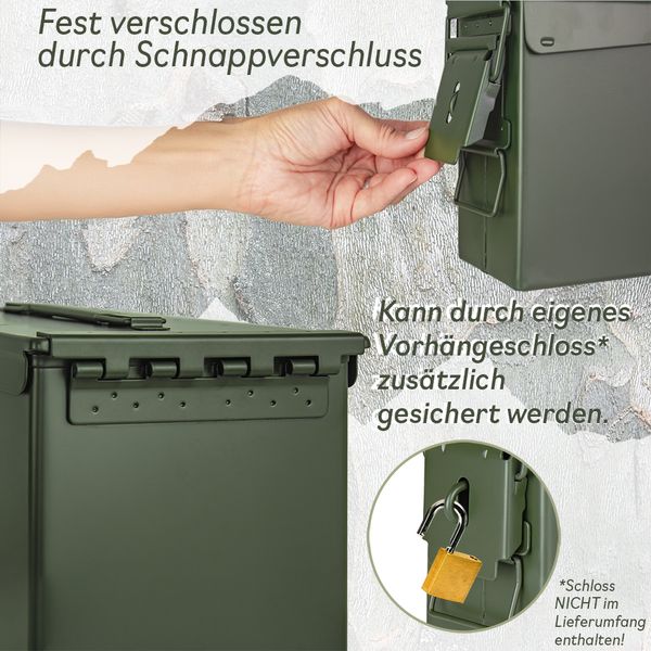 Trucky Auswahl Munitionsbox Ammo Box Metallkiste Metallbox Munitionskiste Aufbewahrungsbox mit Deckel Army Metall Grün