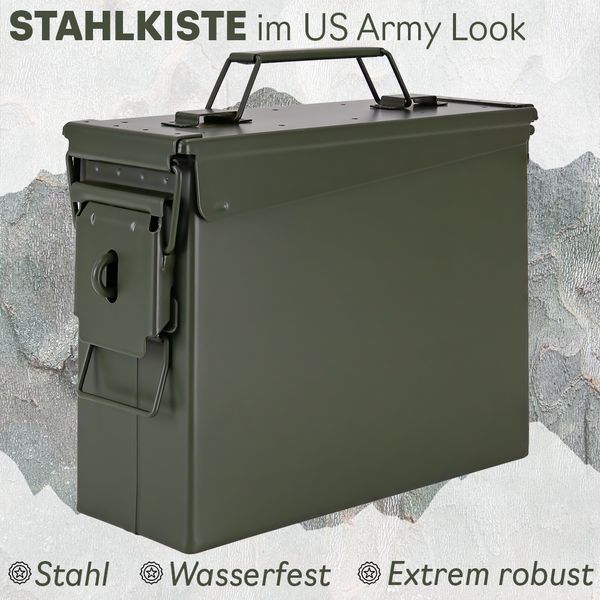 • VIELSEITIG: Perfekt als Werkzeugkiste, Transportbox, Aufbewahrung für Ausrüstung, Dokumente oder als dekoratives Highlight im US-Army-Look. Die Kiste für alles!