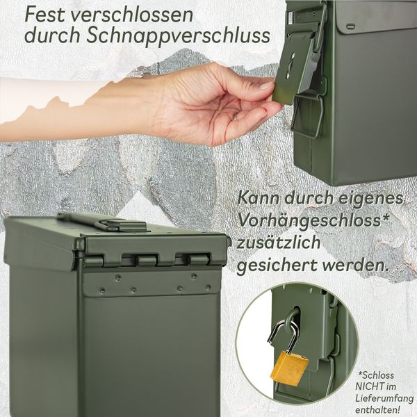 • VIELSEITIG: Perfekt als Werkzeugkiste, Transportbox, Aufbewahrung für Ausrüstung, Dokumente oder als dekoratives Highlight im US-Army-Look. Die Kiste für alles!
