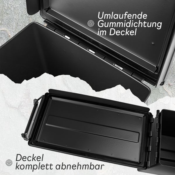 SICHERHEIT: Mit Gummidichtung in Inneren des Deckels - luft-, dampf- und spritzwassergeschützt verschließbar. Der Deckel kann zusätzlich mit Vorhängeschloss gesichert werden. (nicht im Lieferumfang enthalten)