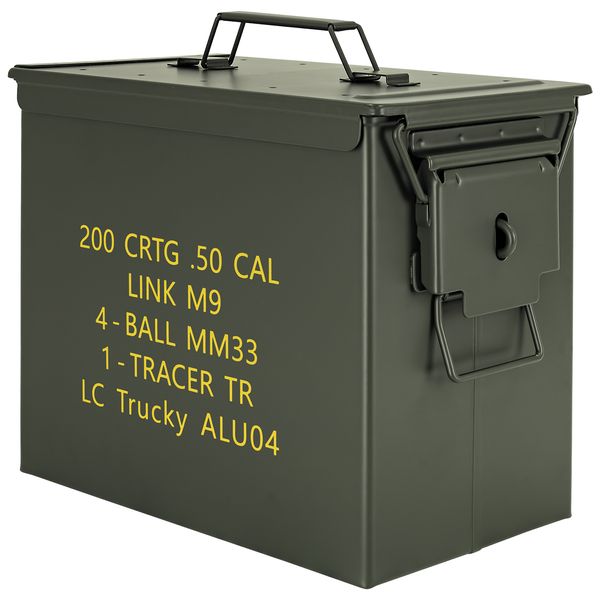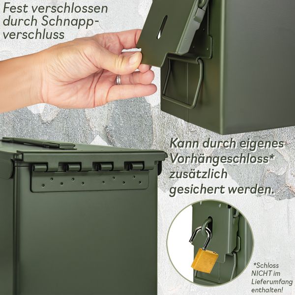 Trucky Munitionsbox Ammo Box Metallkiste Metallbox Munitionskiste Aufbewahrungsbox mit Deckel 33 x 19 x 28 cm Army Grün Metall