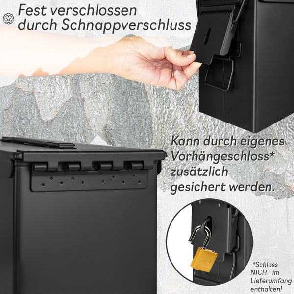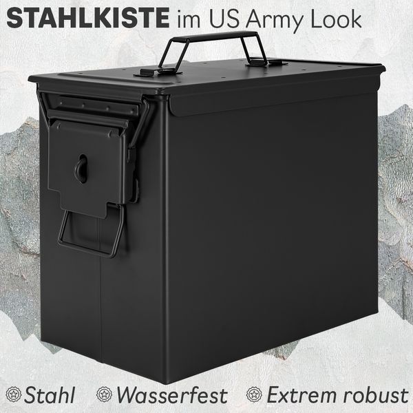 Trucky Munitionsbox Ammo Box Metallkiste Metallbox Munitionskiste Aufbewahrungsbox mit Deckel 33 x 19 x 28 cm Army Schwarz Metall