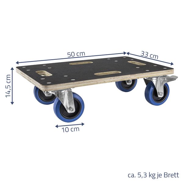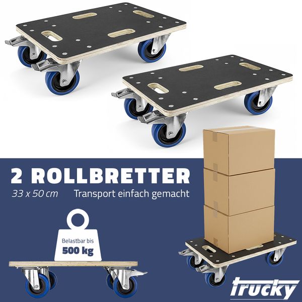 Trucky 2er Set Rollbrett 33 x 50 cm Transportroller 500 kg Möbelroller mit 4 Rollen Transportwagen Rollwagen für Möbel Transport
