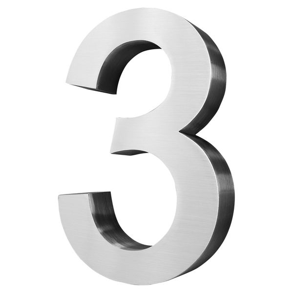 Edelstahl Hausnummer 20 cm Groß Gross Haus Nummer 3 Zahlen Hausnummernschild Hausnummern Schild Gebürstet 3D Arial V2Aox