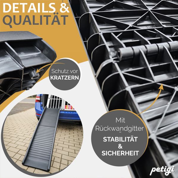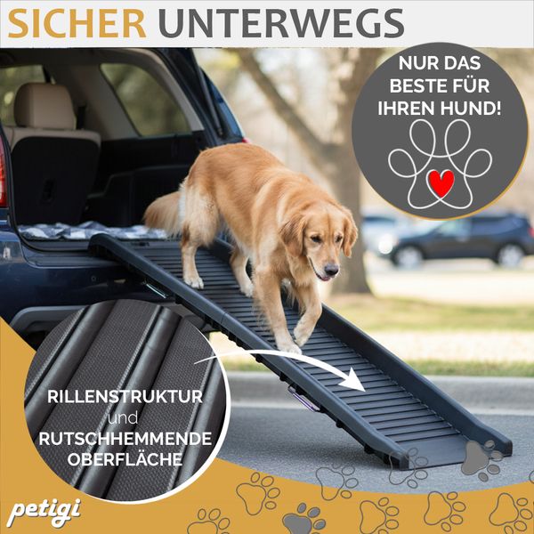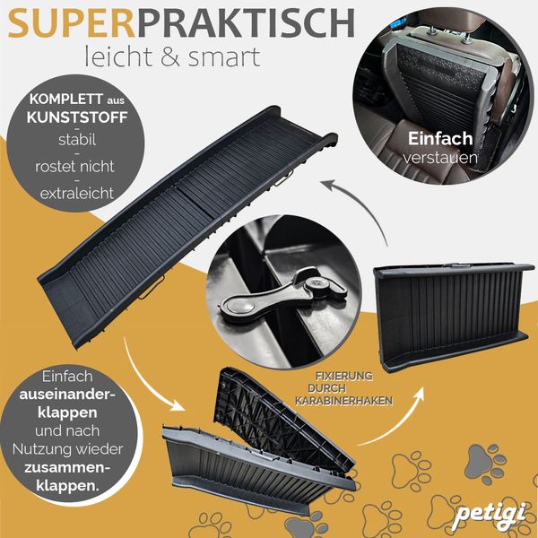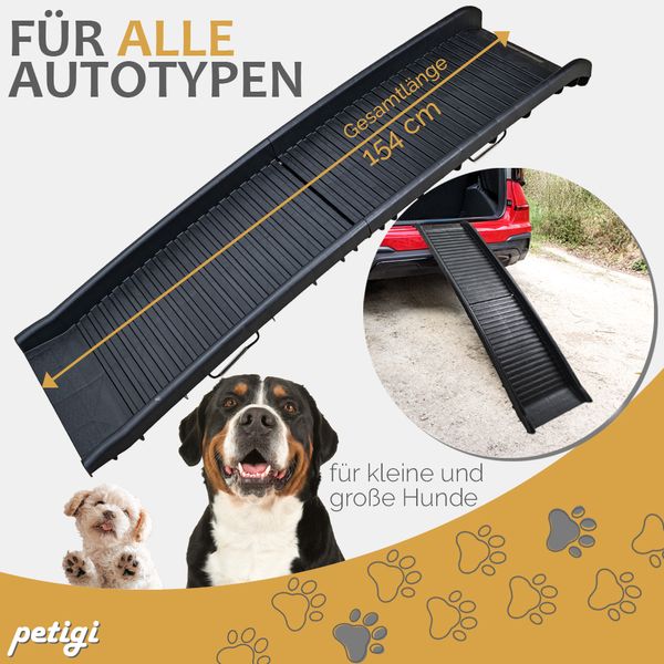 Kunststoff Hunderampe 154 cm klappbar für Auto Hunde Rampe Hundetreppe Einstiegshilfe 70 kg Belastbarkeit petigi