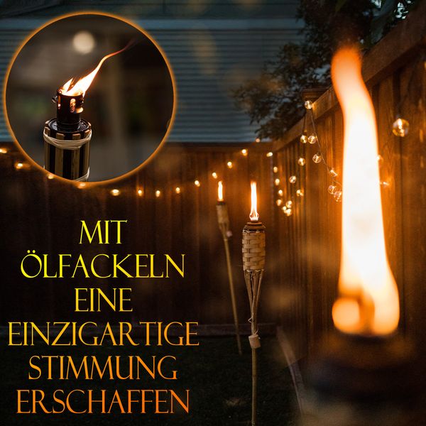 - WICHTIGE HINWEISE: Bitte beachten Sie die im weiteren Text aufgeführten Sicherheits- und Gefahrenhinweise! Befüllen Sie den Brennbehälter mit dem Öl bis zur angegebenen Marke und warten Sie, bis der Docht vollständig getränkt ist. Danach können Sie die Lampe oder Fackel entzünden. Justieren Sie nun den Docht, um Rußbildung zu vermeiden. Nach Gebrauch die Flasche wieder gut verschließen und an einem für Kinder unzugänglichen Ort aufbewahren.