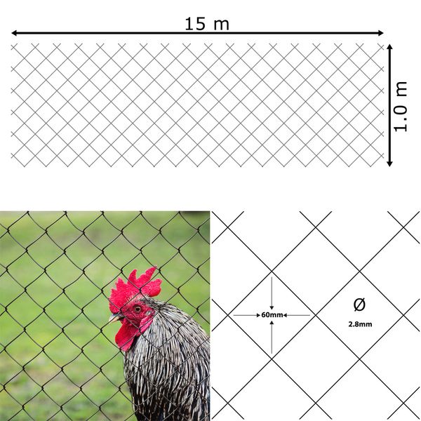 - Material und Maße: Draht - PVC ummantelt / Ø 2.8 mm / Maschenweite 60 x 60 mm