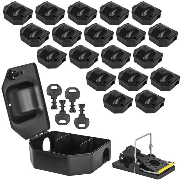 20x Mausefalle Mäusefalle Mäuse Maus Garten Koederbox Köderbox Ecke Köderstation für Mäusegift Maeuse Mäuseköderbox Gift Koeder Wühlmaus Vertreiben Schlüssel Petigi