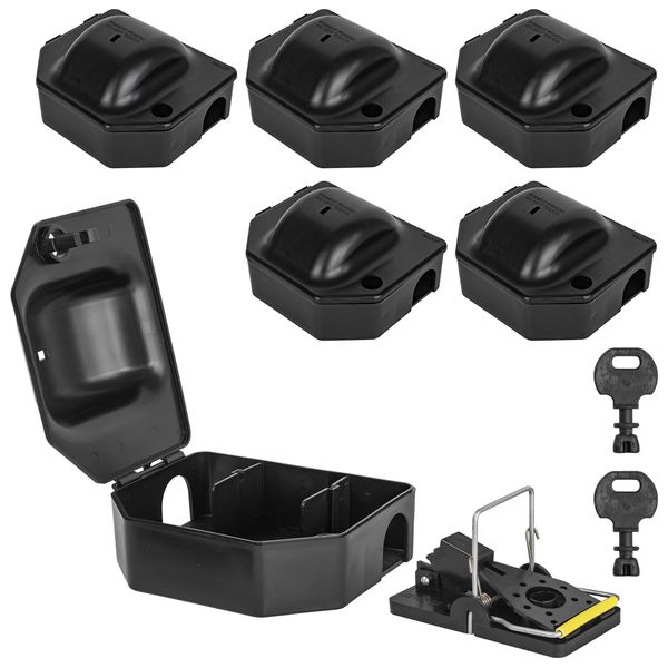 6x Mausefalle Mäusefalle Mäuse Maus Garten Koederbox Köderbox Ecke Köderstation für Mäusegift Maeuse Mäuseköderbox Gift Koeder Wühlmaus Vertreiben Schlüssel Petigi