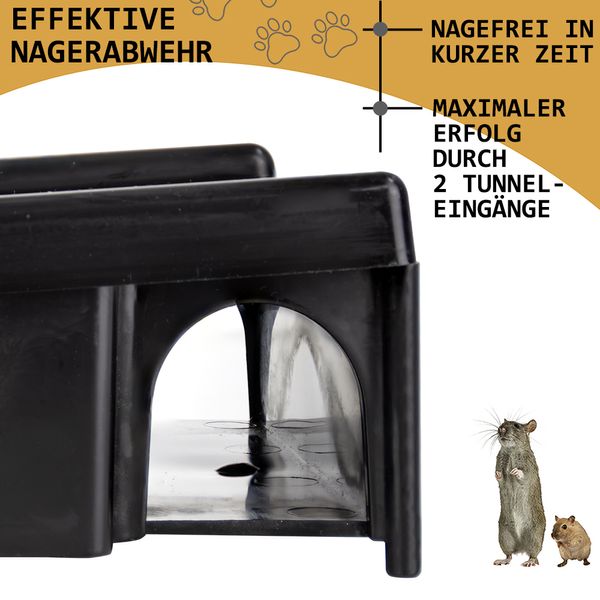 • IMMER PASSEND: Egal ob Sie eine Wuehlmaus, Spitzmaus, Hausmaus o.Ä loswerden möchten, Sie können diese wetterfeste Giftbox nicht nur im Haus, sondern auch super im Garten, gegen Wühlmäuse verwenden. Jede Köderstation besitzt 2 Ablagen für das Mäusegift (Portionsköder)
