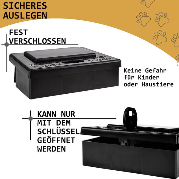 Mausefalle Mäuse Maus Garten Köder Box Koederbox Köderbox Köderstation für Mäusegift Maeuse Mäuseköderbox Gift Koeder Wühlmaus Vertreiben Schlüssel Petigi
