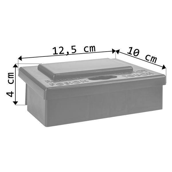 Diese Box ermöglicht Ihnen eine sichere und fachgerechte Ausbringung von Ködern. Das Gehäuse, welches aus stabilem Kunststoff gefertigt ist, besitzt 2 Zugänge für Ratten und Mäuse und sorgt für eine schnelle und sichere Köderannahme.
