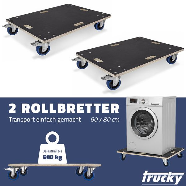 Trucky 2er Set Rollbrett 60 x 80 cm Transportroller 500 kg Möbelroller mit 4 Rollen 2 Bremsen Transportwagen Rollwagen für Möbel Transport